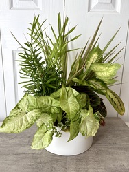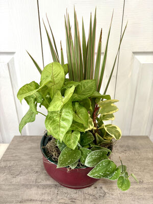 This cheerful compilation of live houseplants in a ceramic pot is a great gift for those seeking something longer-lasting than fresh cut flowers. You can choose from three different colors.