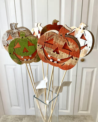 Add a happy little Jack-O'-Lantern pick to your spooky flower delivery this season! Each Jack-O'-Lantern lights up creating a ghoulish glow!